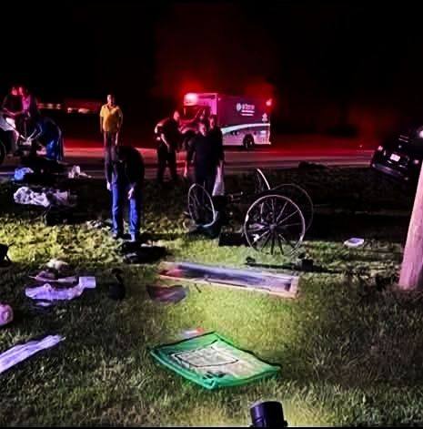 BERNE, Indiana — A late-night collision on State Road 218 turned a peaceful rural road into a chaotic emergency scene after a Jeep struck a horse-drawn Amish buggy, throwing nearly everyone out of the vehicle and sending multiple people to hospitals. First responders were called to the crash at about 11:20 p.m. on October 7; when they arrived they found a badly damaged buggy scattered across the pavement and a Jeep in a ditch.