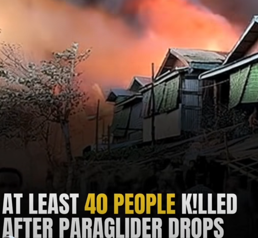 A paraglider dropped bombs on a celebration in Myanmar, killing at least forty people.