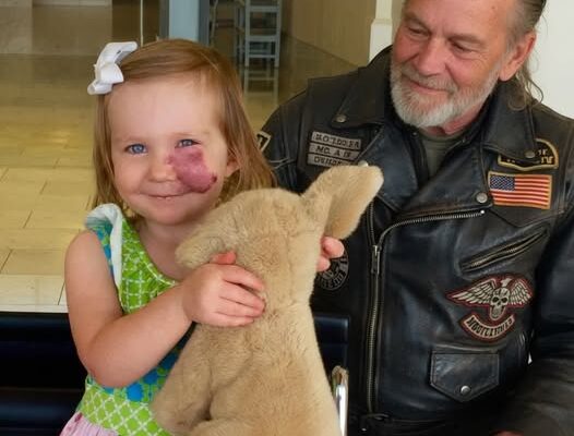 Biker asked to adopt the little girl with facial tumor whom nobody else wanted. I watched through the observation window as this massive man in a leather vest covered in patches knelt in front of little Ruth and asked if she’d like to come home with him.